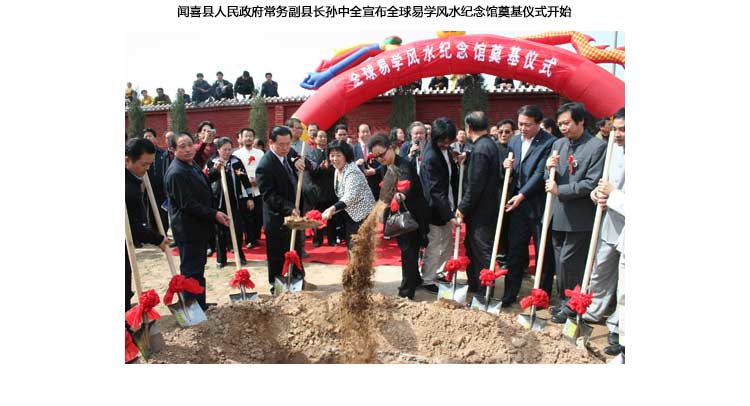 首届全球易学风水名师代表大会暨全球易学风水纪念馆奠基仪式于2008年4月21日至23日在中国易学风水文化的发源地山西省闻喜县胜利召开。大会给全球易学界名人颁发了各类获奖证书。并隆重地举行了全球易学风水纪念馆奠基仪式。将要兴建的易学风水纪念馆是目前全世界所独一无二的。